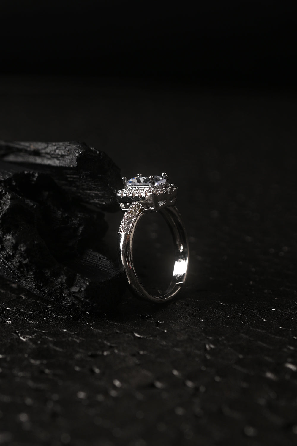 Made with high quality.Zircon Silver Ring• Adjustable size (Free Size)• Marquise-cut center crystal• Pavé detailing...