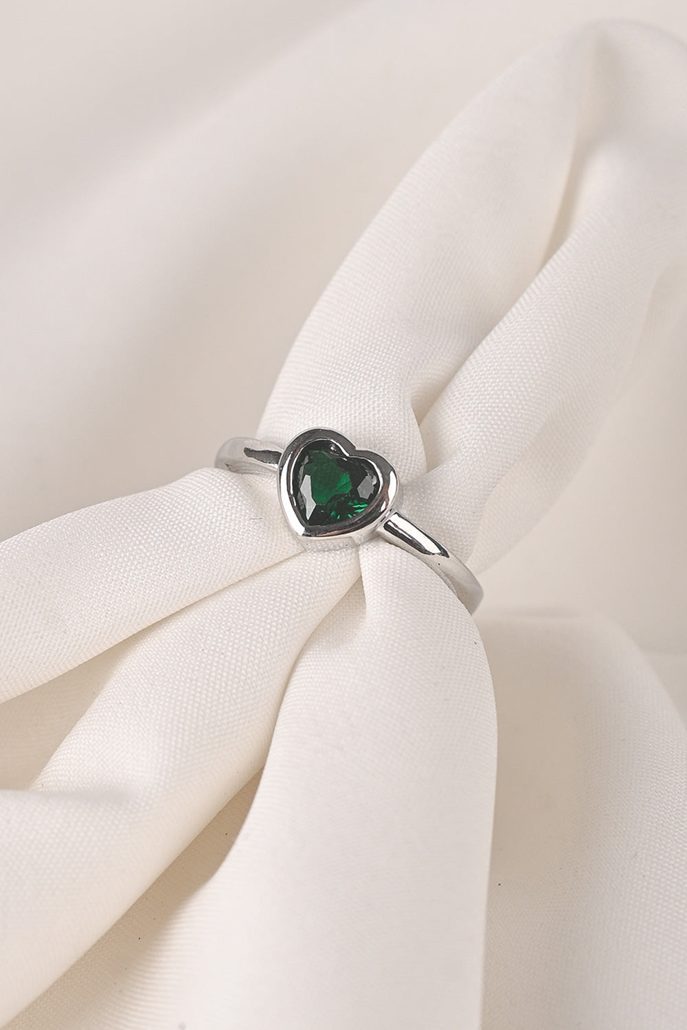 Made with high quality.Zircon Green Stone Silver Heart Ring Adjustable Size (Free size)