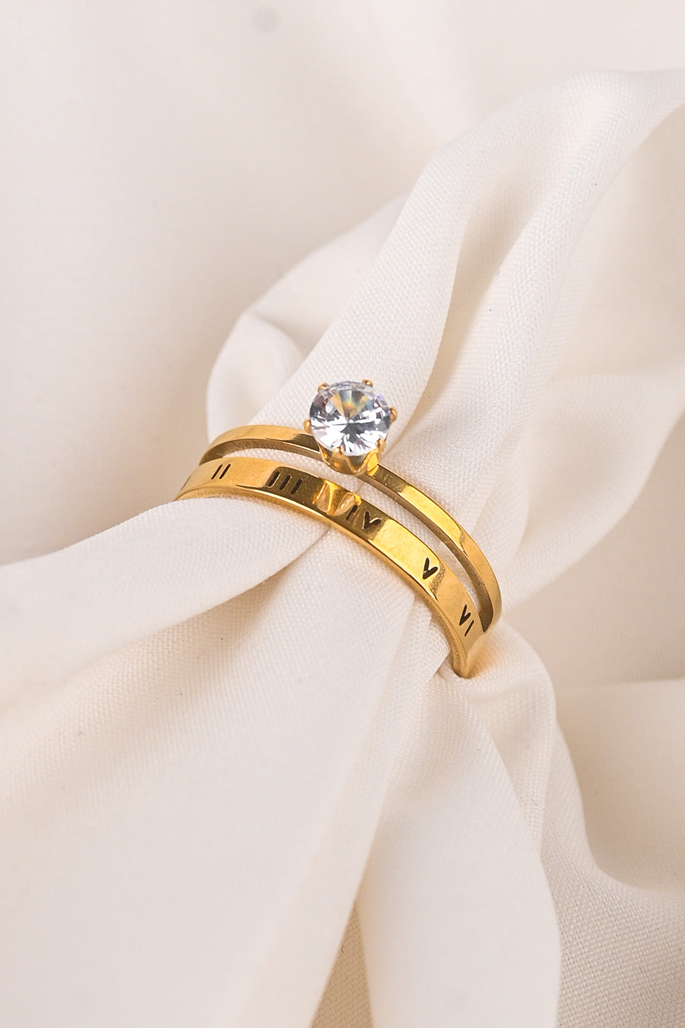 Made with high quality.Golden Zircon Ring• Adjustable size (Free Size)• Zircon Stones• Elegant and Comfortable