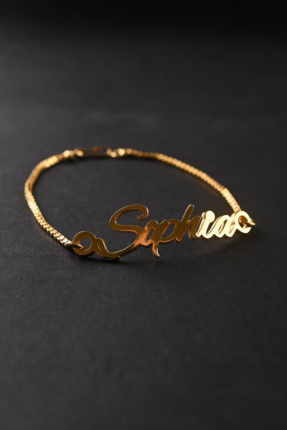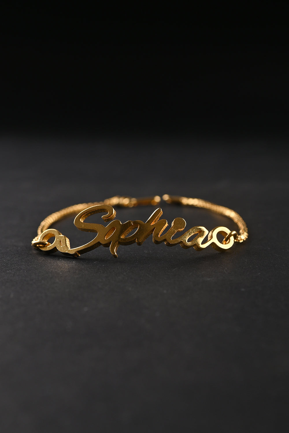 A name bracelet is a personalized piece of jewelry featuring a person's name It’s a popular accessory for adding a unique, meaningful touch to one’s outfit, often given as a thoughtful gift or worn to express individuality.